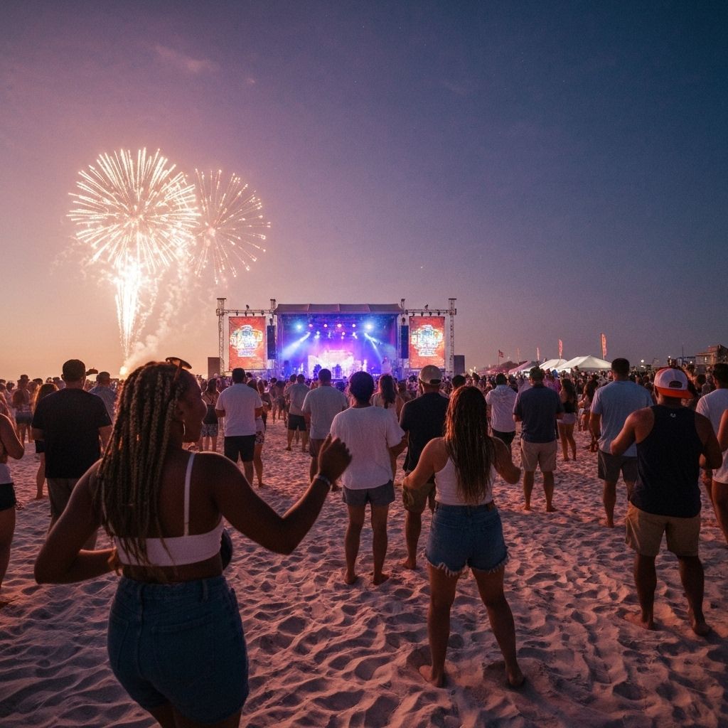 Seafood fests, live-music weekends, rallies, and holiday fireworks by the Gulf.
